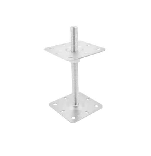 - Typ: Nastaviteľná pätka stĺpika so závitovou tyčou (napr. M20 alebo M24) a voľnou spodnou doskou.