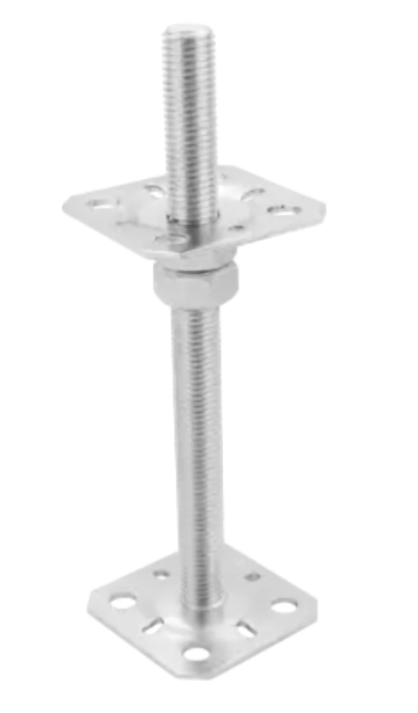 Vďaka skrutkovému mechanizmu (závitová tyč / nastavovacia časť) je možné jemne korigovať výšku stĺpa, aby bol v rovine, aj pri nerovnom podklade. -