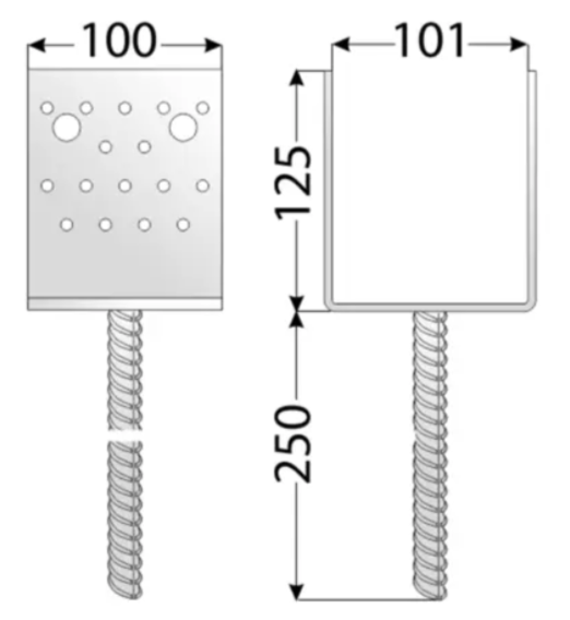 Čo je pätka PS U (zapustená pätka typu U) Ide o kovový spojovací prvok určený na ukotvenie dreveného stĺpika do betónu, zabezpečenie stability konštrukcie a oddelenie dreva od priameho kontaktu so základom.