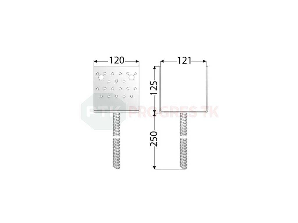 Ide o kovový spojovací prvok určený na ukotvenie dreveného stĺpika do betónu, zabezpečenie stability konštrukcie a oddelenie dreva od priameho kontaktu so základom.
