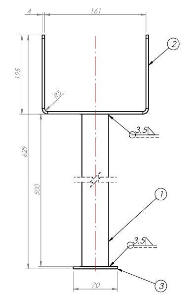 Pätka stĺpa trubková 160/60x629x4 PSS "R500"