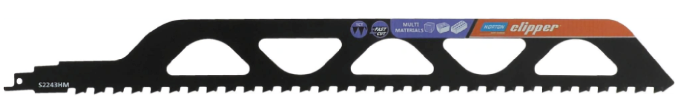 Pilový list Norton Clipper S2243HM s celkovou dĺžkou 455 mm je profesionálny nástroj do chvostovej píly, navrhnutý pre rýchle a robustné rezanie stavebných materiálov.