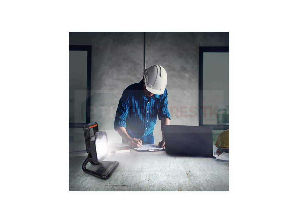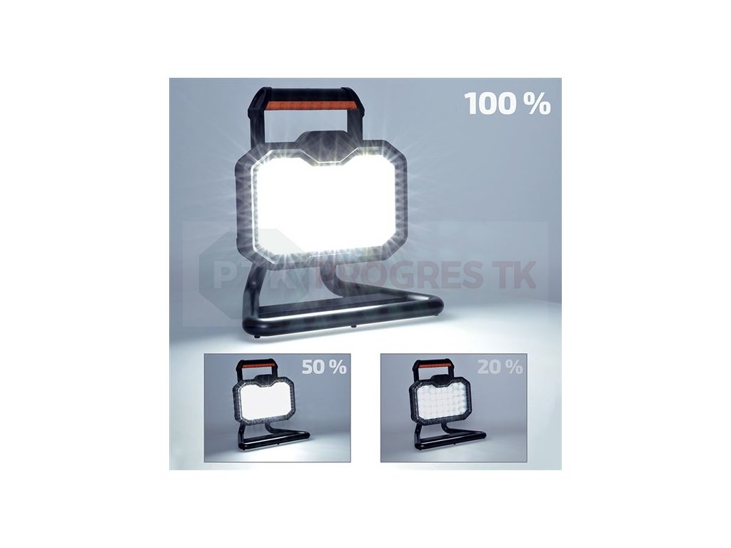 Reflektor je vybavený 40 čipmi LED SMD2835, ktoré zabezpečujú rovnomerné rozloženie svetla pod uhlom 120°. Na výber máte z troch režimov svietenia - 100 %, 50 % a 20 %, takže si môžete intenzitu nastaviť podľa svojich potrieb. Výkonná 4400mAh Li-Ion batéria vám umožní svietiť až 10 hodín (pri najnižšej intenzite), pričom plné nabitie trvá približne 4 hodiny.