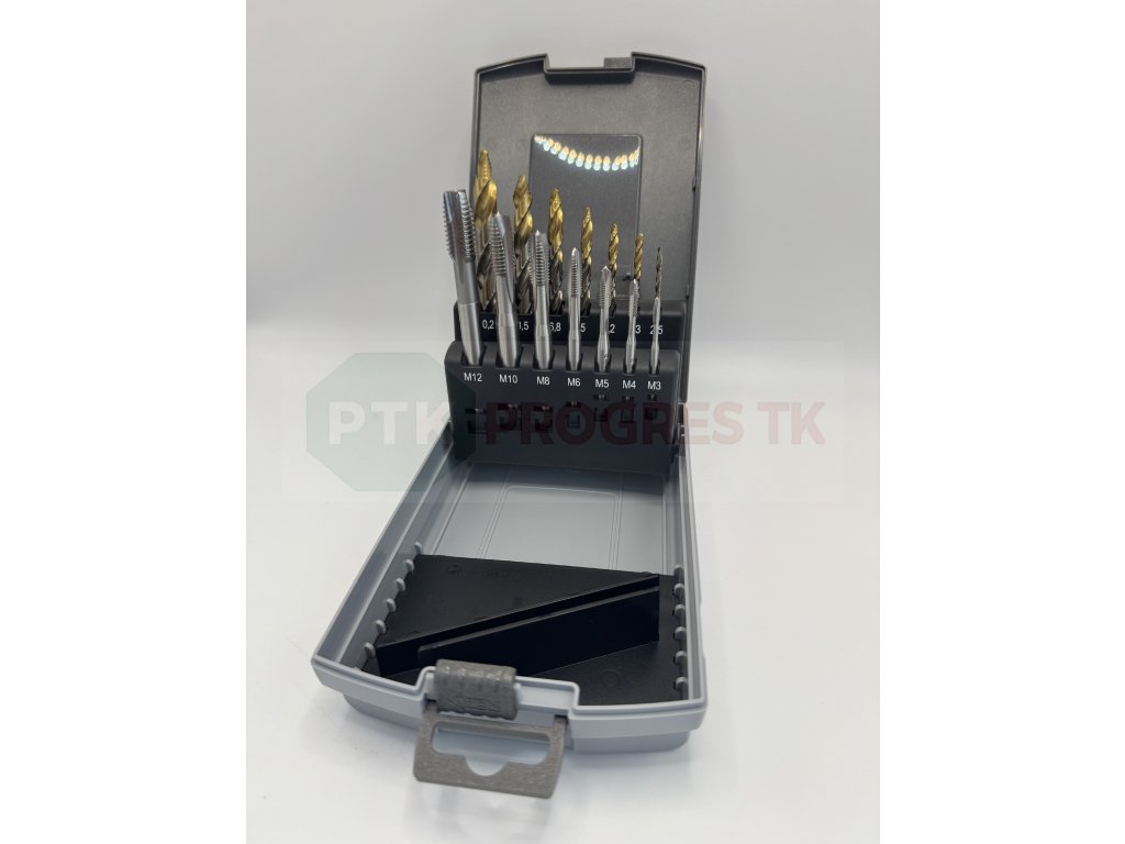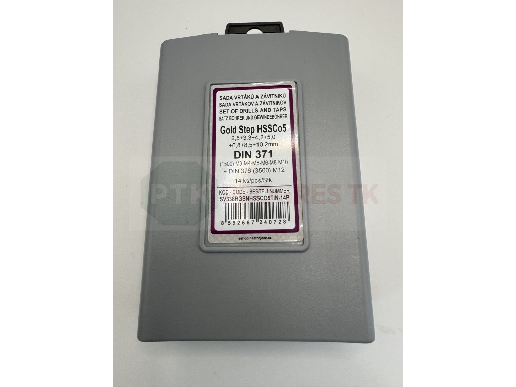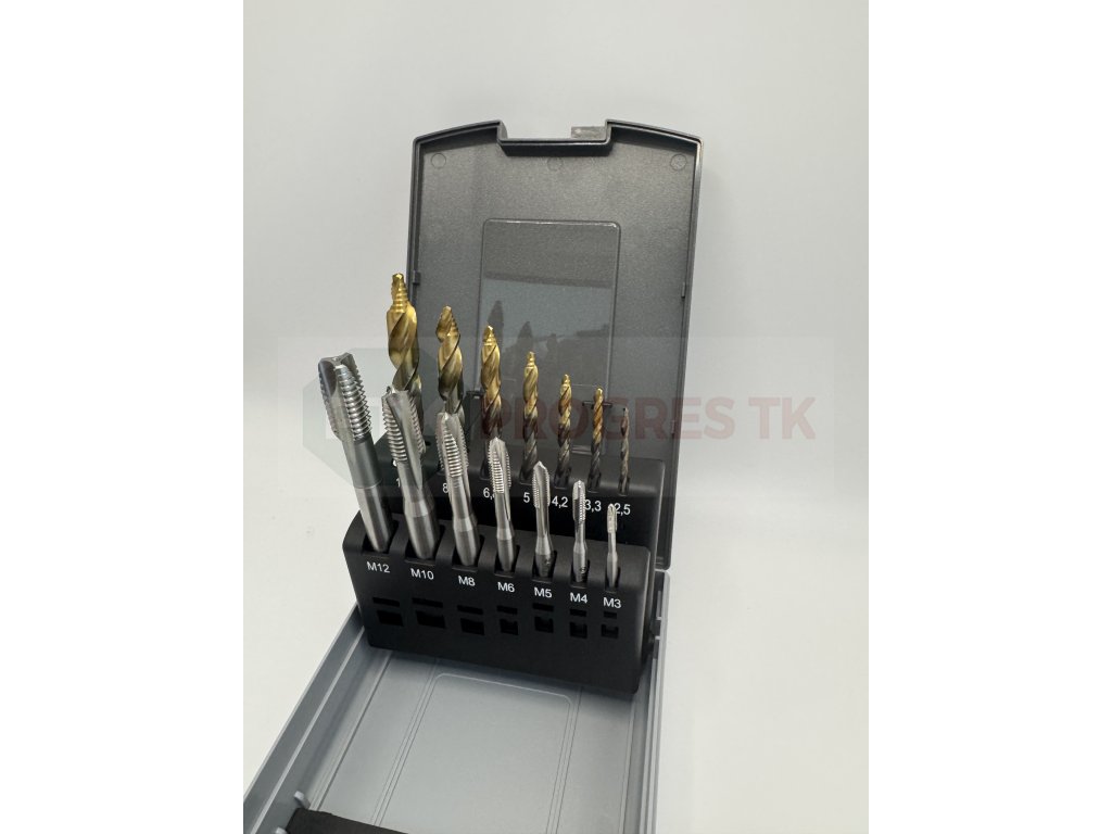 Sada vrtákov a závitníkov DIN 371 (1500) + DIN 376 (3500) 14 dielov HSS Co5 TiN Gold Step