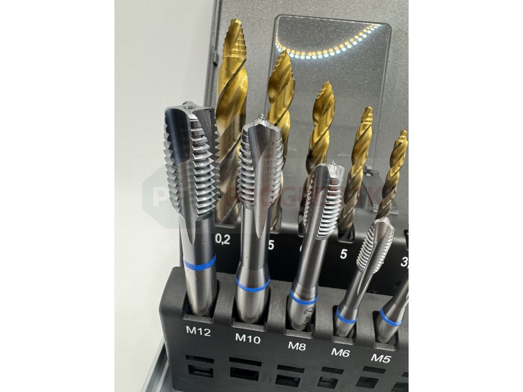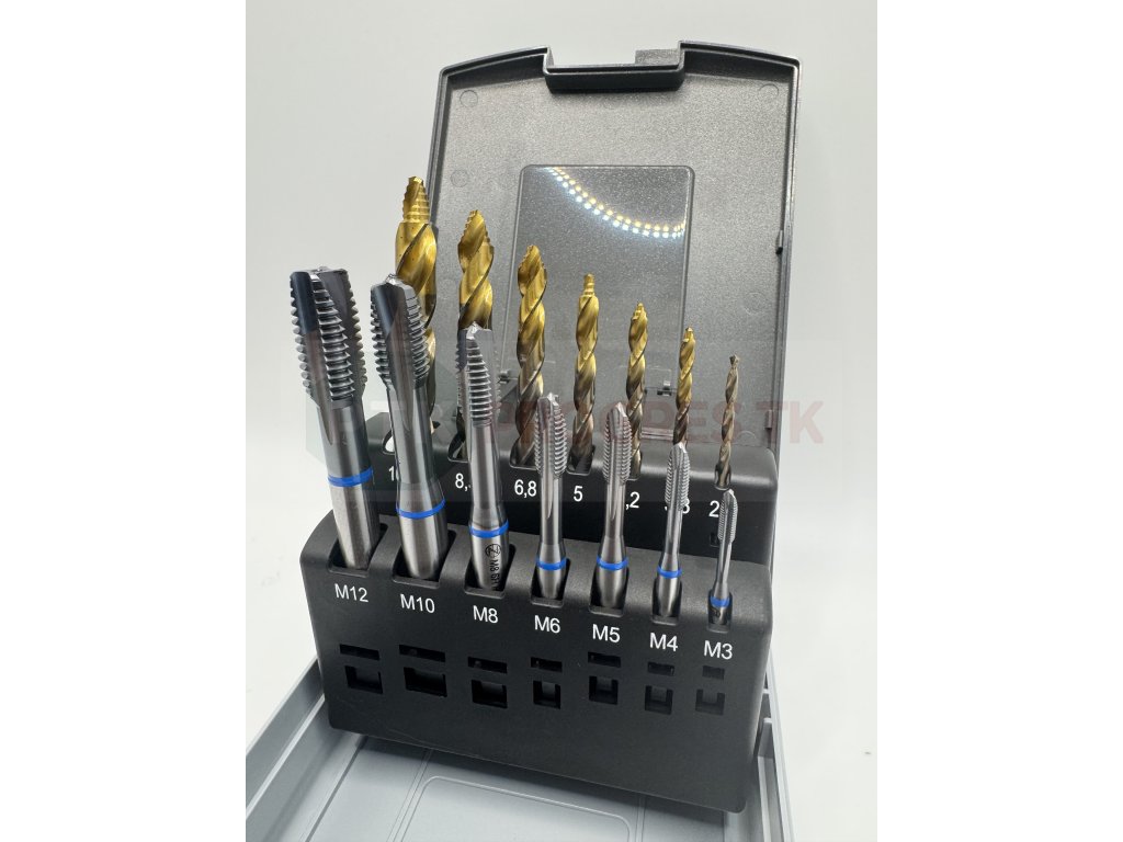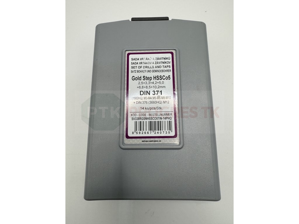 Sada vrtákov a závitníkov DIN 371 (1660HQ) + DIN 376 (3660HQ) 14 dielov HSS Co5 TiN Gold Step