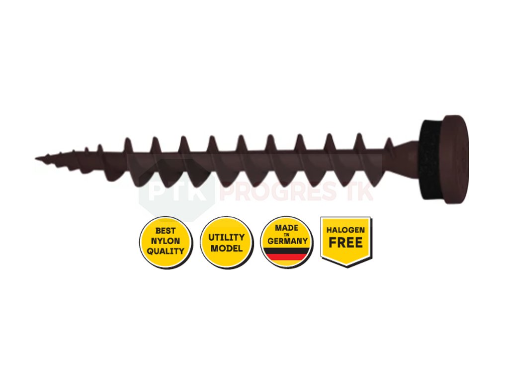 - Špeciálna skrutka vyrobená z nylonu vystuženého sklenenými vláknami s tesnením EPDM; odolnosť voči starnutiu, poveternostným vplyvom a UV