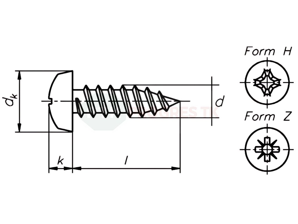 | Spojovací materiál názov: | Skrutky do plechu s polgulatou hlavou a krížovou drážkou |