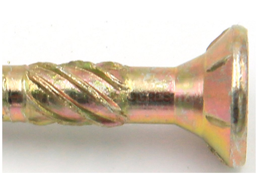Materiál: kalená oceľ s povrchovou úpravou žltý zinok. Všetky naše skrutky sú špeciálne tvrdené a sú viskoplastické a ohýbateľné najmenej do 45 stupňového uhla. Čiže sú veľmi elastické a pritom veľmi pevné.