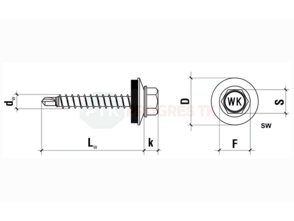 Skrutka na upevnenie strešnej krytiny do dreva s podložkou 6hr