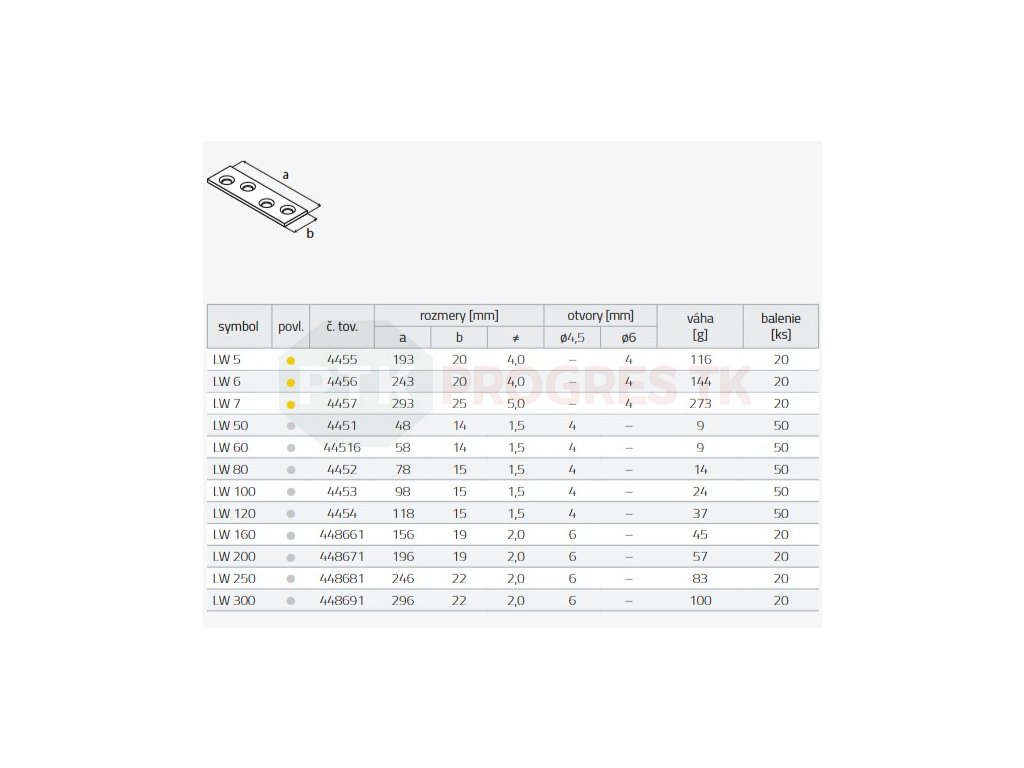 Spojka LW100 úzka 98x15x1,5mm BZN bal.20ks