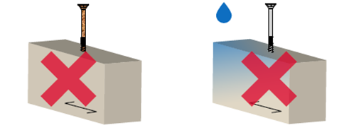 Nepoužívaj zhrdzavené skrutky! Neskrutkuj do mokrého dreva!