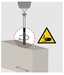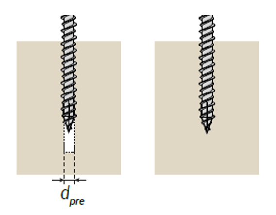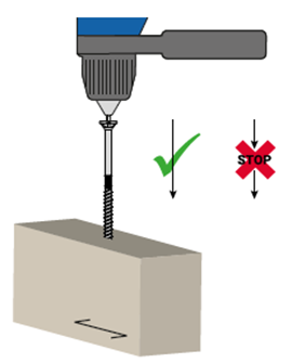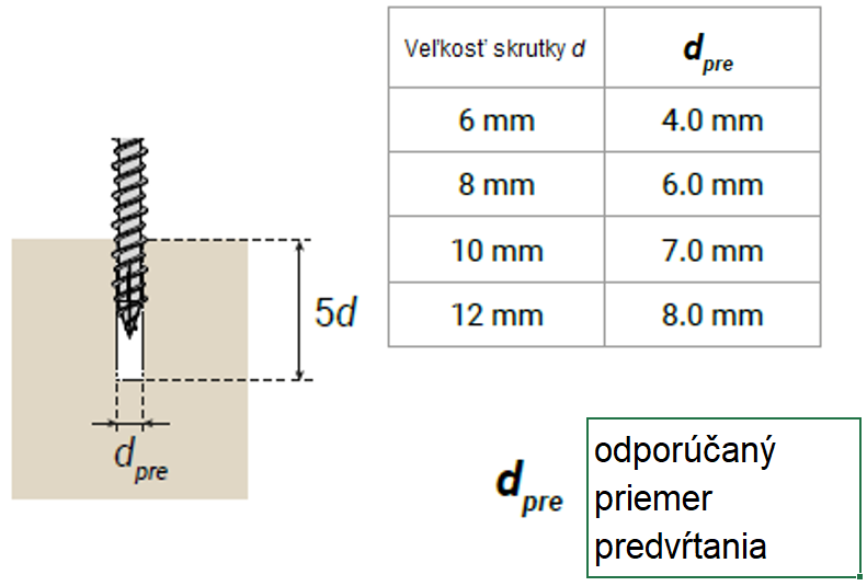 Ak stavebný plán určuje predvŕtanie, použite uvedený priemer vrtáka. Ak predvŕtanie nie je potrebné, skrutku zaskrutkujte priamo do materiálu. Vždy je povolené vytvoriť polohovací otvor.