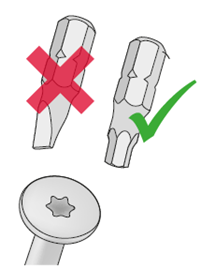 Vždy používajte správny bit, aby ste predišli poškodeniu skrutky a minimalizovali riziko zranenia. Typ a veľkosť bitu je uvedené na etikete obalu.
