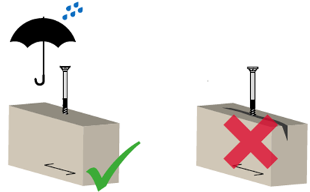Aby bola montáž bezpečná a trvácna, všetky materiály - vrátane dreva a skrutiek - musia zostať suché počas prepravy, skladovania aj montáže.