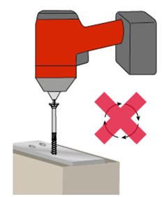 Udržujte skrutkovač v osi so skrutkou, aby bola inštalácia rovná. Ak je vyžadovaný presný uhol zaskrutkovania, použite pomôcku na kontrolu uhla pre presnosť.
