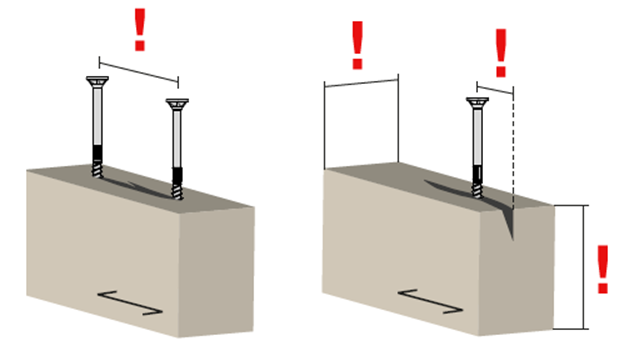 Uistite sa, že vzdialenosti od okrajov a rozostupy skrutiek sú v súlade s plánom, aby ste predišli praskaniu. Ak sa praskliny objavia, skontrolujte a upravte rozostupy a hrúbku dreva.