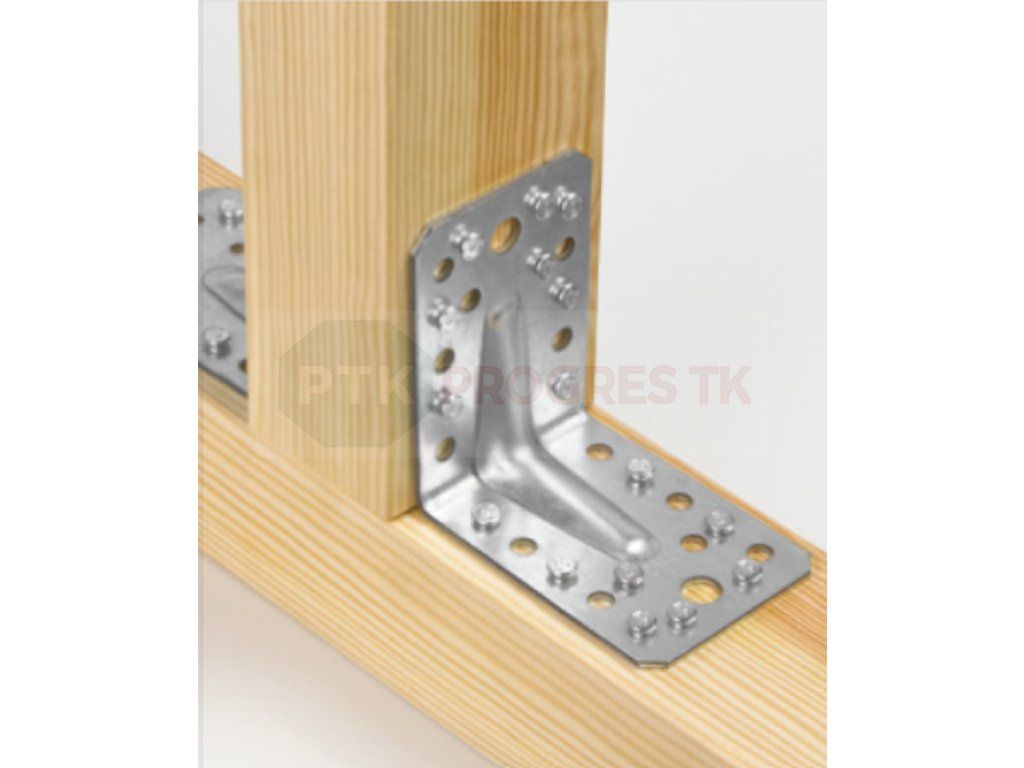Uholník s prelisom KP je univerzálny spojovací prvok, ktorý sa používa primárne na spájanie drevených konštrukcií, ako sú krovy, trámy, alebo rôzne rámové konštrukcie. Vďaka hlbokému prelisovaniu má tento uholník zvýšenú pevnosť, čo zaručuje odolnosť proti ohybu a celkovú stabilitu spojov.