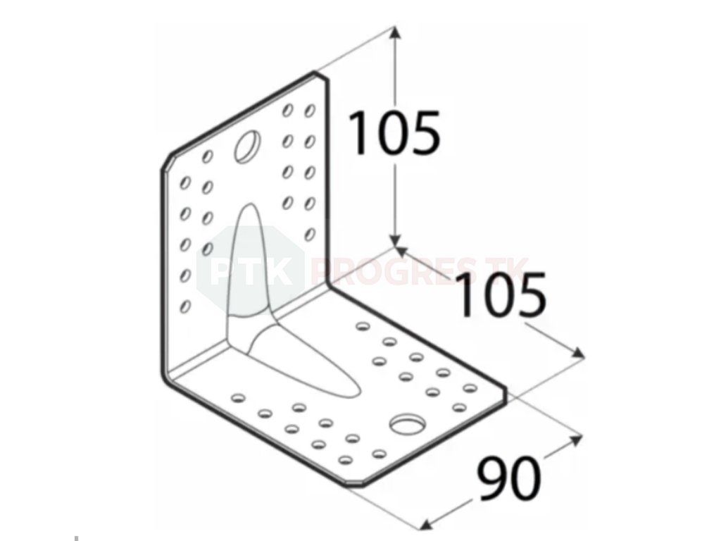 Uholník s prelisom KP je univerzálny spojovací prvok, ktorý sa používa primárne na spájanie drevených konštrukcií, ako sú krovy, trámy, alebo rôzne rámové konštrukcie. Vďaka hlbokému prelisovaniu má tento uholník zvýšenú pevnosť, čo zaručuje odolnosť proti ohybu a celkovú stabilitu spojov.