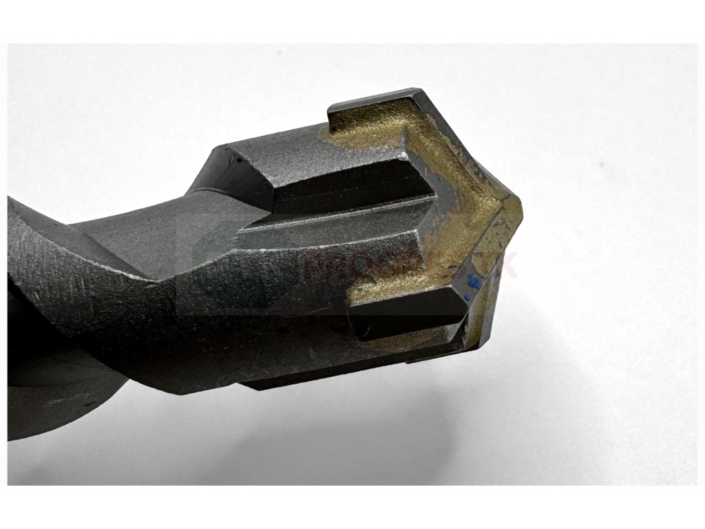 - štvorbritý hrot zo spekaných karbidov s tvrdosťou HRA 89,5-90 odoláva vyšším teplotám a zaručuje razantný priechod vrtáka materiálom