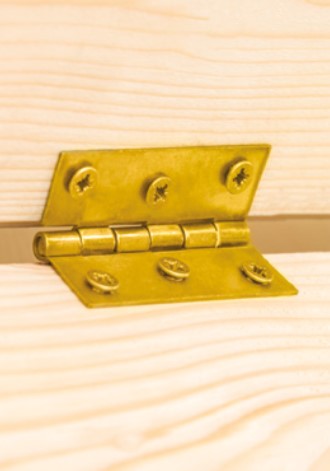 Príklopy a veká: Bežne sa používa na veká drevených debien, truhlíc alebo boxo